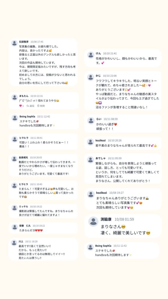 撮影の前も後もずっと緊張していて、「どんな反応もらえるかな…」って思ってたから、感想を読んでホッとしました笑