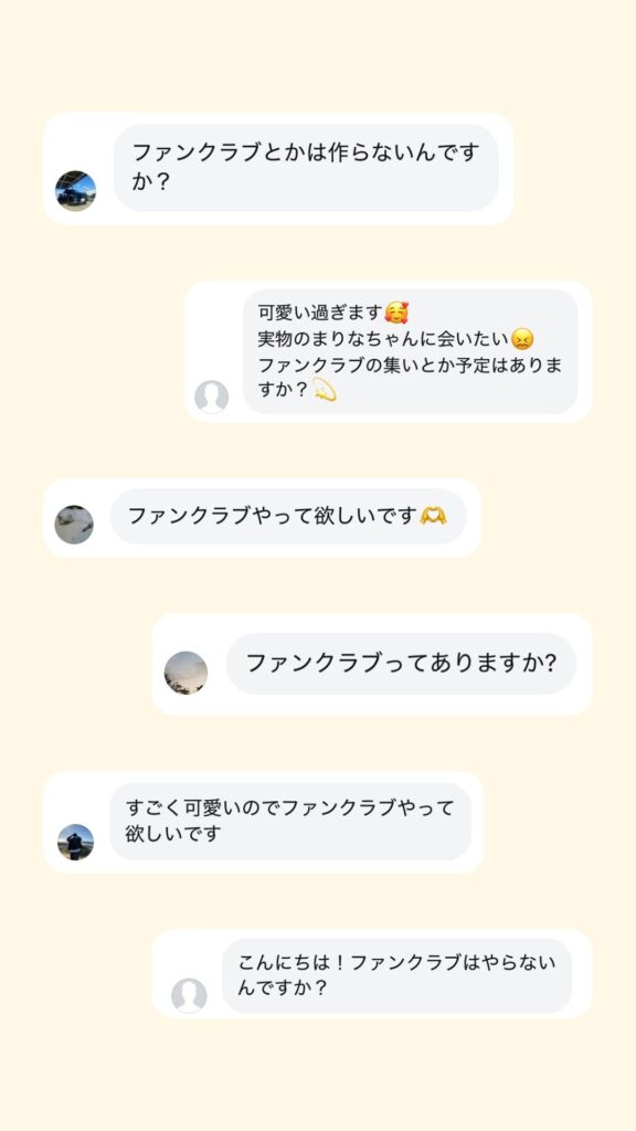 ファンクラブの件、まりなさんの新しいチャレンジですね。